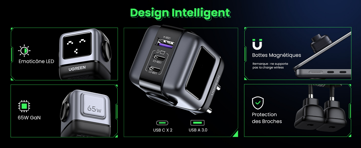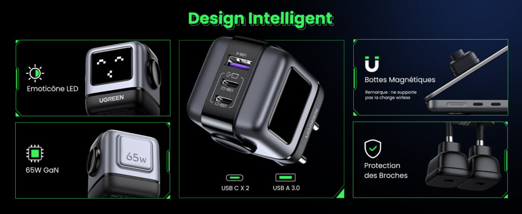Ugreen, le fabriquant d’accessoires de charge, a dévoilé son chargeur Nexode RG 65W . Avec sa conception unique et ludique en forme de robot, le chargeur RG 65W utilise la technologie GaNFast pour fournir une charge plus rapide, plus sûre et plus pratique.